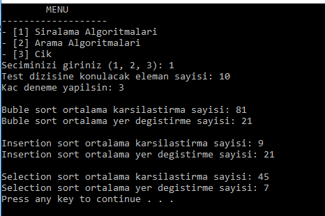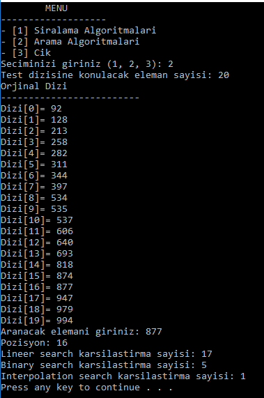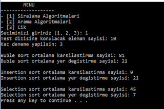 Bu haftaki ödevim için epeyce uğraştıktan sonra dedim ki blogda da paylaşayım, belki birinin işine yarar. Programın amacı “unique” olarak rastgele elemanlardan oluşmuş bir diziye 3 farklı sıralama (Buble, Insertion, Selection) ve arama (Linear, Binary, Interpolation) algoritmasi uygulayarak hangisinin daha hızlı sonuç verdiğini görmek.